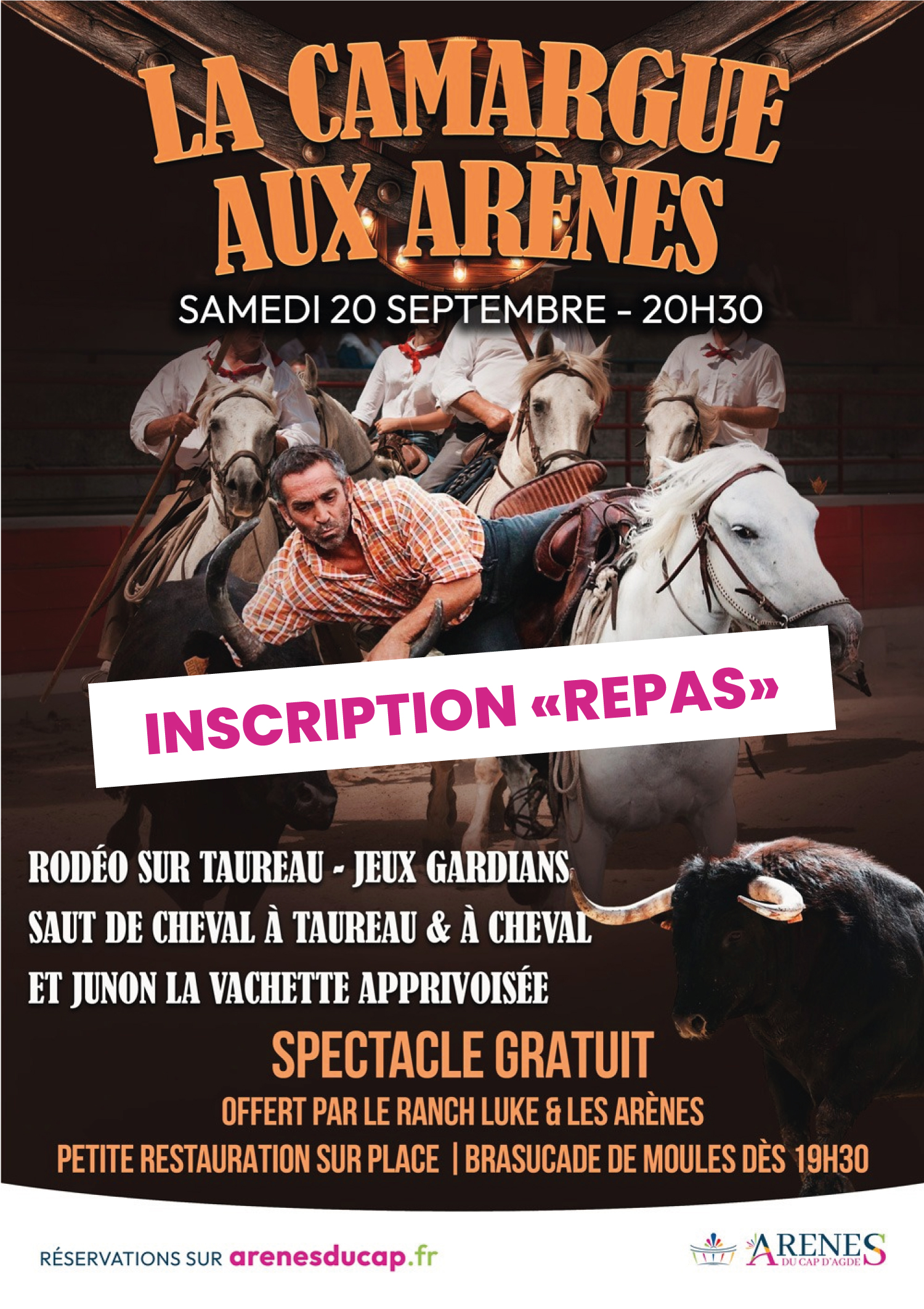 Arènes du Cap d'Agde 2 Avenue des Contrebandiers, Agde, France🔥 La Camargue s’invite aux Arènes du Cap d’Agde ! 🔥📅 Samedi 20 septembre – 20h30 Vivez une soirée unique au cœur des traditions camarguaises :🐂 Rodéo sur taureau🤠 Jeux gardians🐎 Sauts spectaculaires de cheval à taureau et à cheval✨ Sans oublier Junon, la vachette apprivoisée ! 👉 Un spectacle gratuit, offert par le Ranch […]